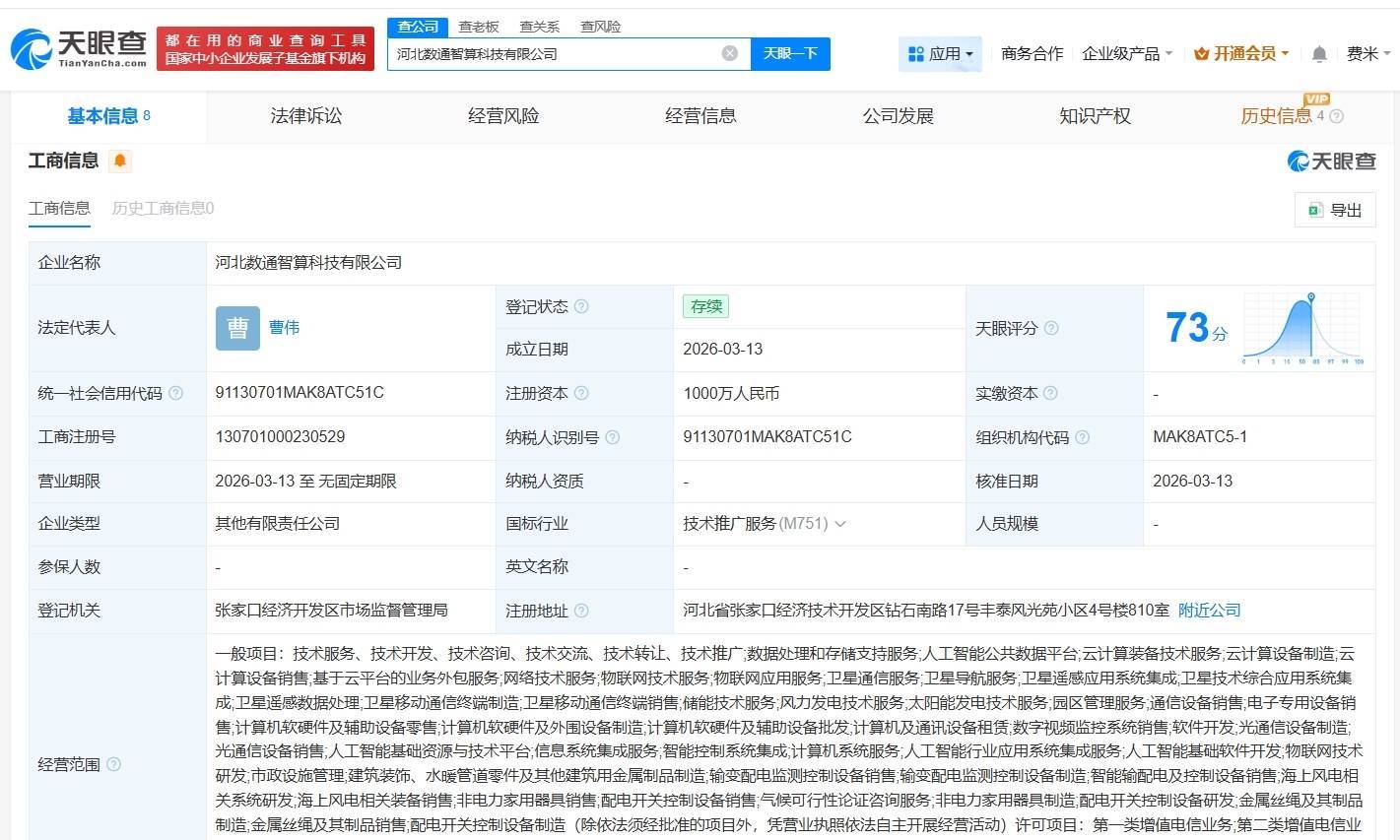 南方财经3月17日电,天眼查App显示,近日,河北数通智算科技有限公司成立,法定代表人为曹伟,注册资本1000万人民币,经营范围包括数据处理和存储支持服务、人工智能公共数据平台、云计算装备技术服务等。股东信息显示,该公司由河北骐通科技有限公司、软通动力(301236)旗下软通智算科技(广东)集团有限公司共同持股。