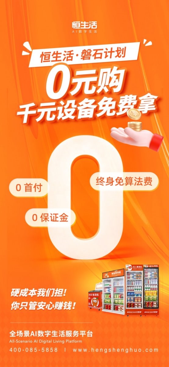 近日,全场景AI数字生活服务平台恒生活响应国家号召,正式推出年度战略级项目“磐石计划”。恒生活负责人表示,该计划以创新性的0首付、0保证金、终身免算法费为核心权益,将千元级智能货柜硬件以“零成本”交付合作伙伴,彻底打破智能零售创业的高昂启动成本与技术壁垒,让国家政策红利转化为商户触手可及的增长机遇,真正实现AI数智科技普惠大众,切实提升经营效率与盈利能力。